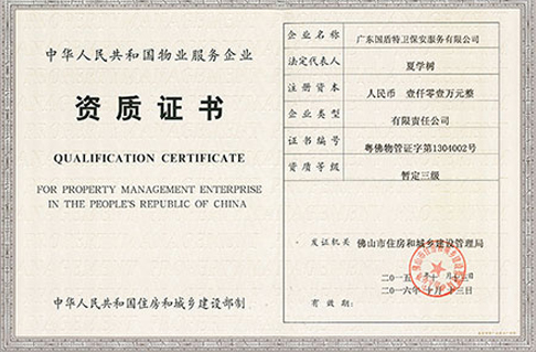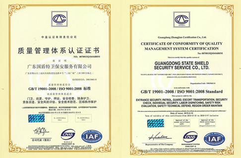 ISO9001管理體系認證,佛山市A級重合同守信用企業廣東保安協會會員。